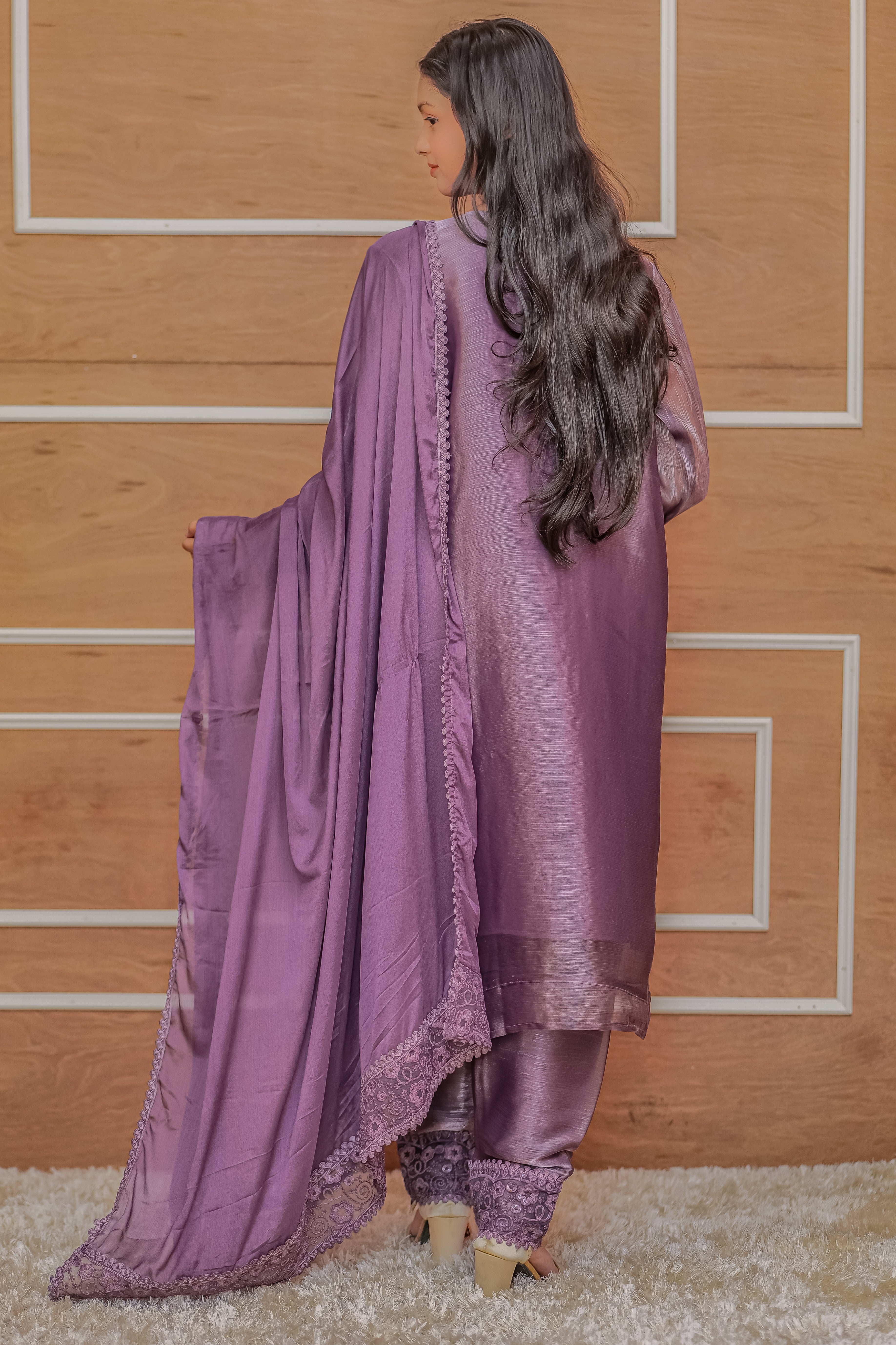 Rich and regal, this mehroon sharara set is crafted in velvet with intricate golden zari work. A showstopper for weddings and royal evenings.