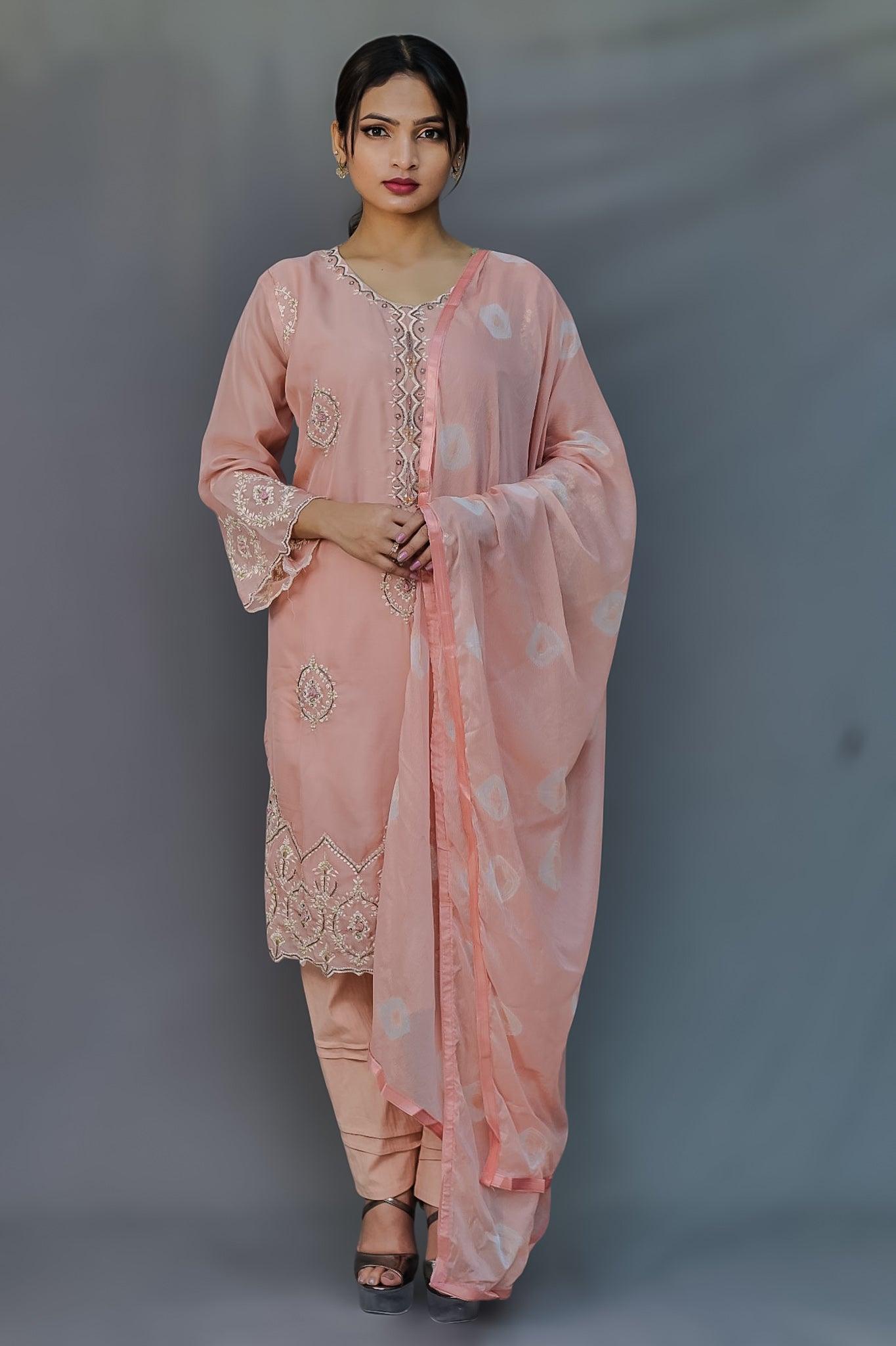 Enjoy the freshness of summer with our Floral Printed Women’s Suit in soft chiffon and pastel shades. The floral prints add a playful yet elegant vibe, perfect for daytime events or brunch with friends.